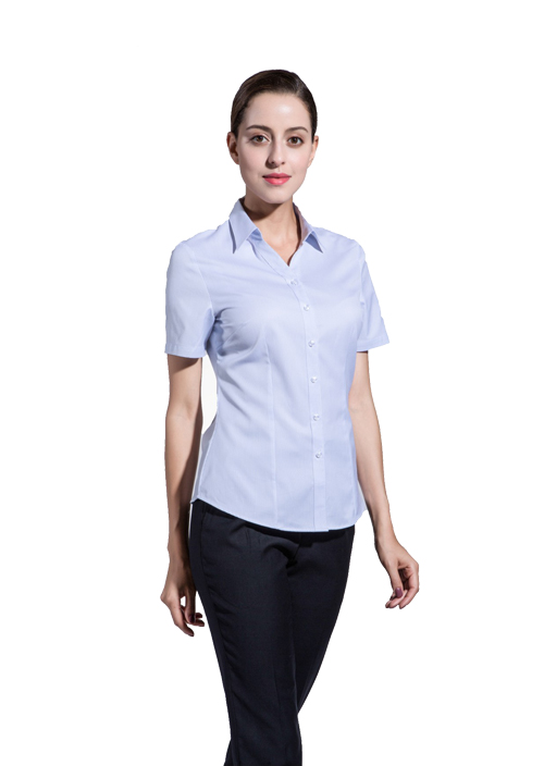 品名:女短袖v領襯衣;版型:時尚修身版;貨號:GMD6003 ;面料:G6003;顏色:藍色豎條紋 ;Fabric:C60/TS2080s/2*80s/2