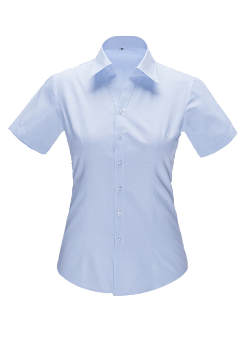 品名:女短袖V領襯衣YWD4504 ;版型:修身版;貨號:YWD4504 ;面料:Y4504;顏色:藍色明斜紋 ;Fabric:C45/T55