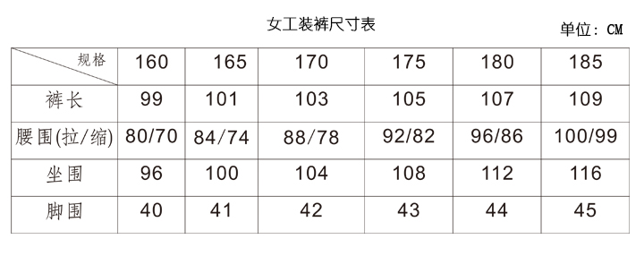 如果少數員工無法找到對應的尺碼,可依據您提供的升高體重腰圍來制作,特體制作每件收取100元制作費用。